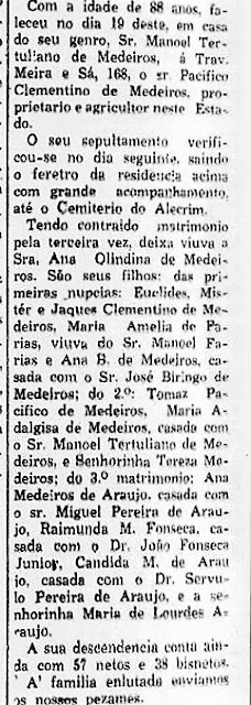 Através de jornais e registro civil foi possível saber mais sobre Pacífico, falecido em 19 de maio de 1944. Era natural de Jardim do Seridó, filho de André Corsino de Macedo e de Cândida de Macedo.